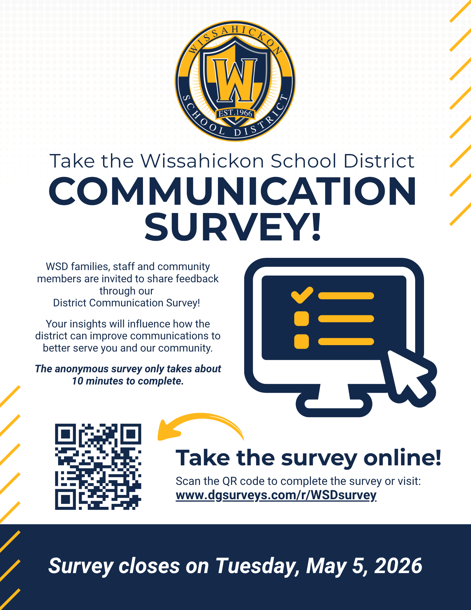 The Wissahickon School District invites all families, staff and community members to participate in a survey focused on the district’s communication practices. It is designed to gather feedback on how the district shares information, what is working well, and where improvements can be made to better serve the community. It will take approximately 10 minutes to complete the survey, which is administered by the Donovan Group, an independent communications firm. The anonymous survey is available online at https://dgsurveys.com/r/WSDsurvey and will remain open through Tuesday, May 5.
